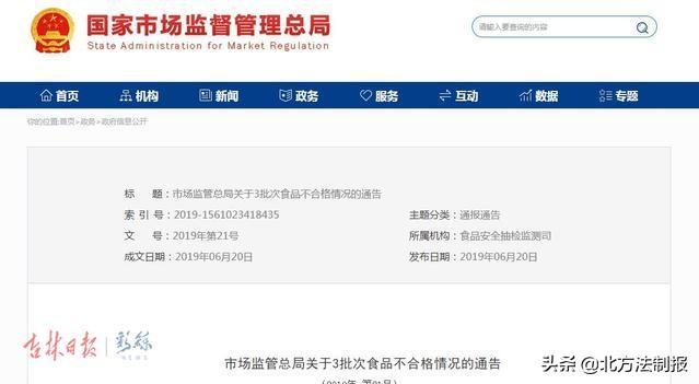 记者从市场监督管理总局网站上获悉,该局发布3批次食品不合格情况的通告。