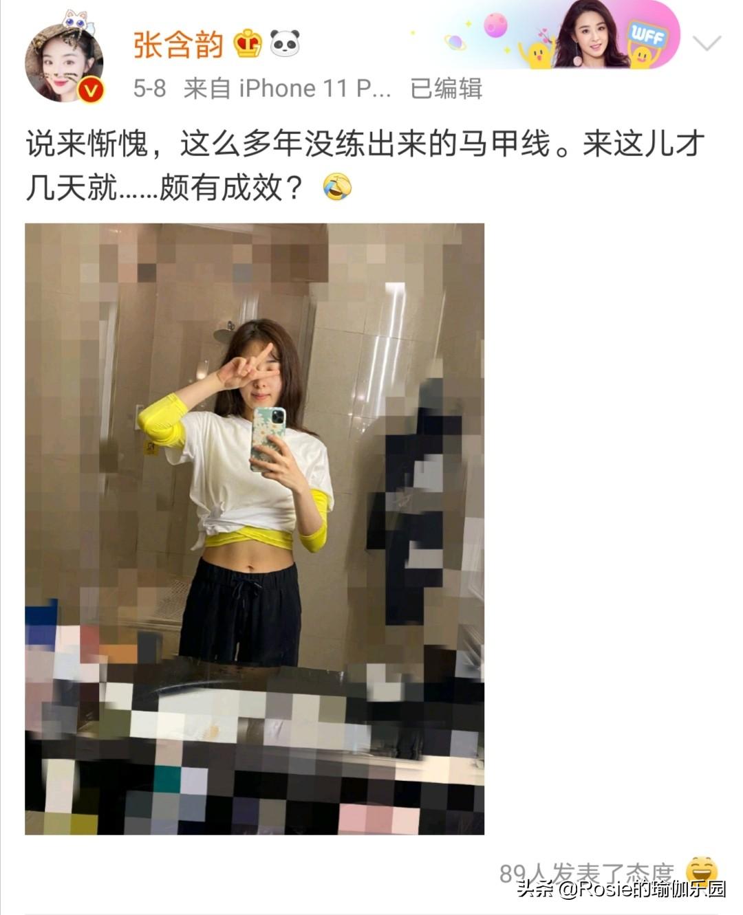 张含韵练出了多年没有的马甲线。