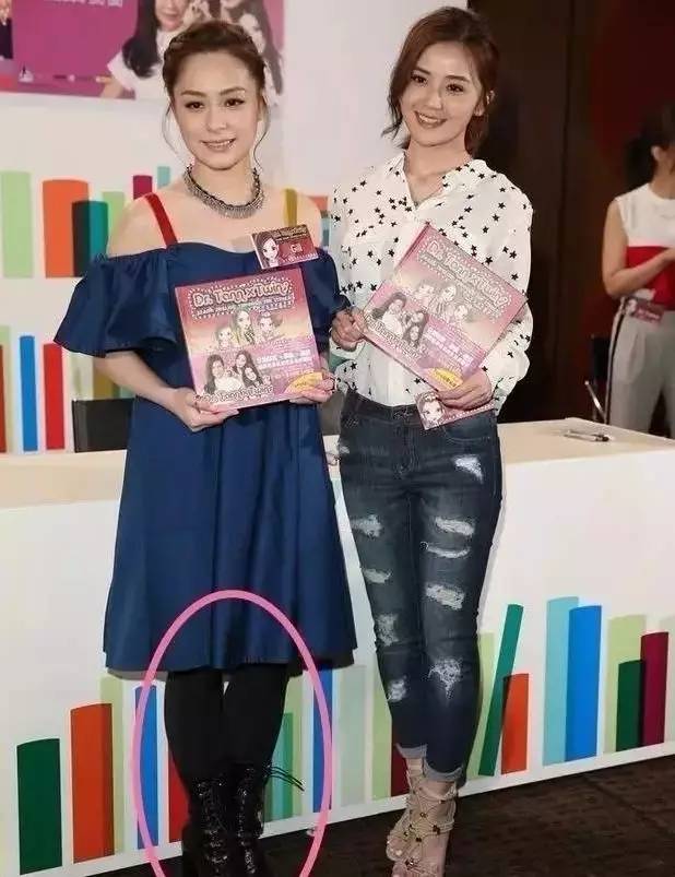 和阿sa同框,虽然俩人都是脚踩高跟鞋,但是阿娇小腿粗的劣势还是很,长裙和高帮鞋的穿搭本身就会露出粗的那截小腿,哪怕用黑色长袜打底也逃不过这一劫,衬的一旁的阿sa细长很多。