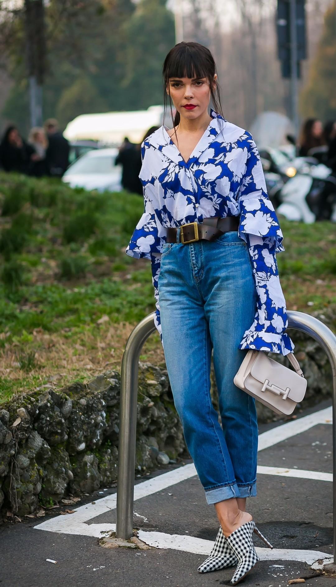 前文提到阿娇紧身破洞牛仔裤留下败笔,但并不是因为小腿粗就不能穿牛仔裤,而是要选择简约款式的牛仔裤来穿搭,破洞的元素看着过于复杂,对小腿更多是负担,直筒或是卷边都很好。