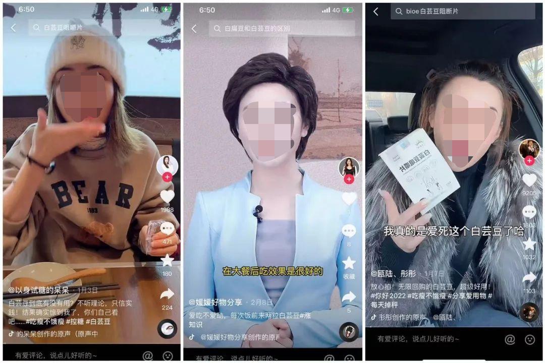 比起酵素,抖音上近期更广为人知的瘦身产品可能是白芸豆。“它能够阻断碳水吸收,大餐之前吃两粒就不用担心了”“你要是想减得快点就吃两粒,你要是怕减得太快,就吃一粒”类似的广告词,频繁出现在各种达人的视频中。