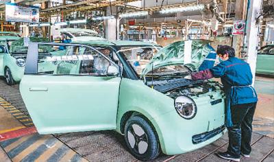 江苏省南京市长安汽车有限公司生产车间一派繁忙景象,工人们加班加点组装新款新能源汽车,以满足市场订单需求。