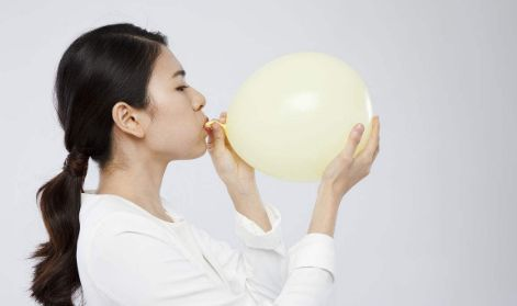 然后我们可以借助吹气球来帮助我们瘦咬肌,每天我们可以吹五个气球,实在没有气球的也可以无实物表演,但是要记住无实物的时候一定要用力,要感受到脸颊在发力。吹气球的时候一定要慢速均匀一点,做这个动作可以使我们脸部在发力和放松两种情况下交替,缓解我们咬肌的发达状况。从而达到瘦咬肌的目的。