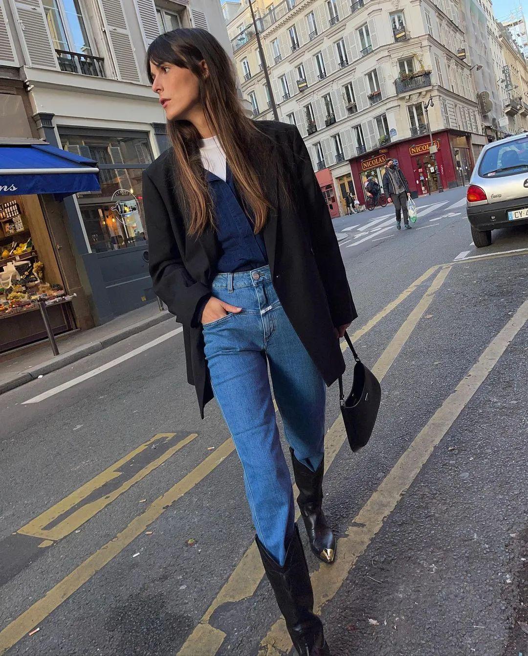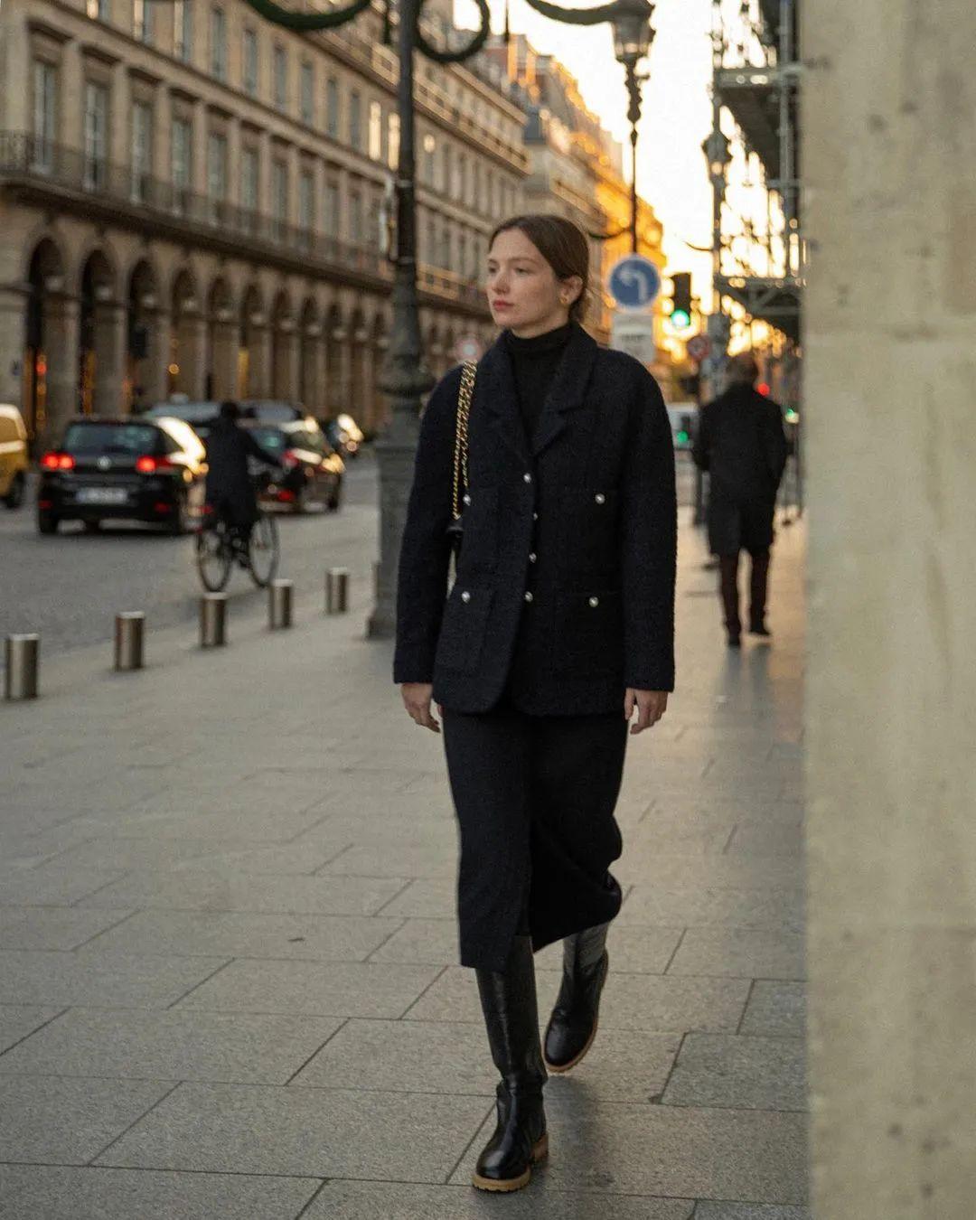 穿了西部靴,其他单品尽量选简约款,更能突出它的风格。▼