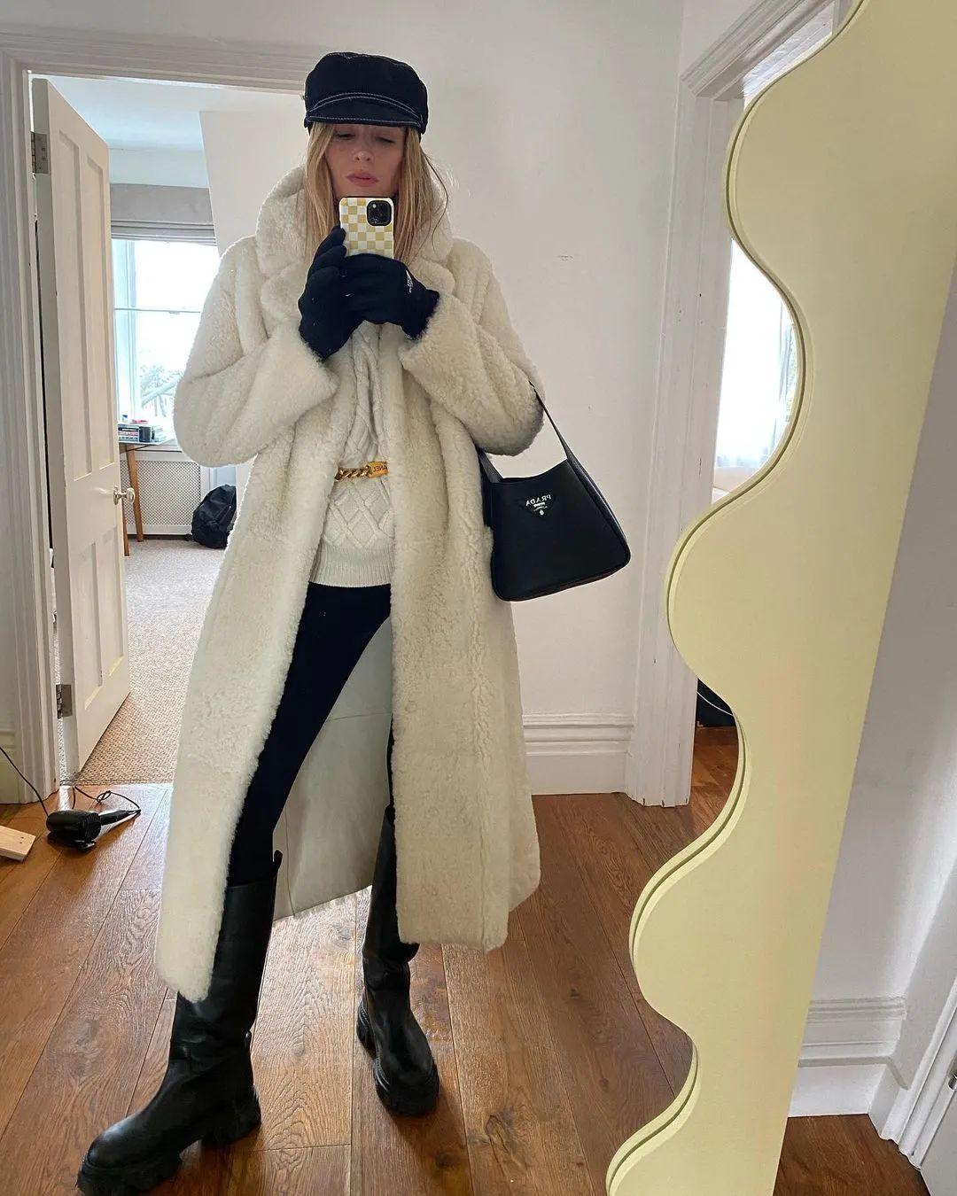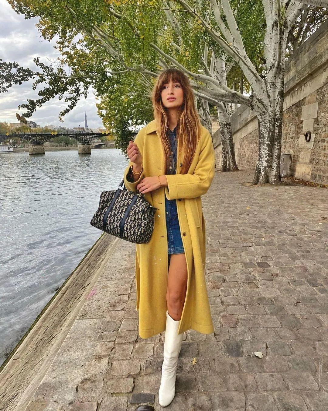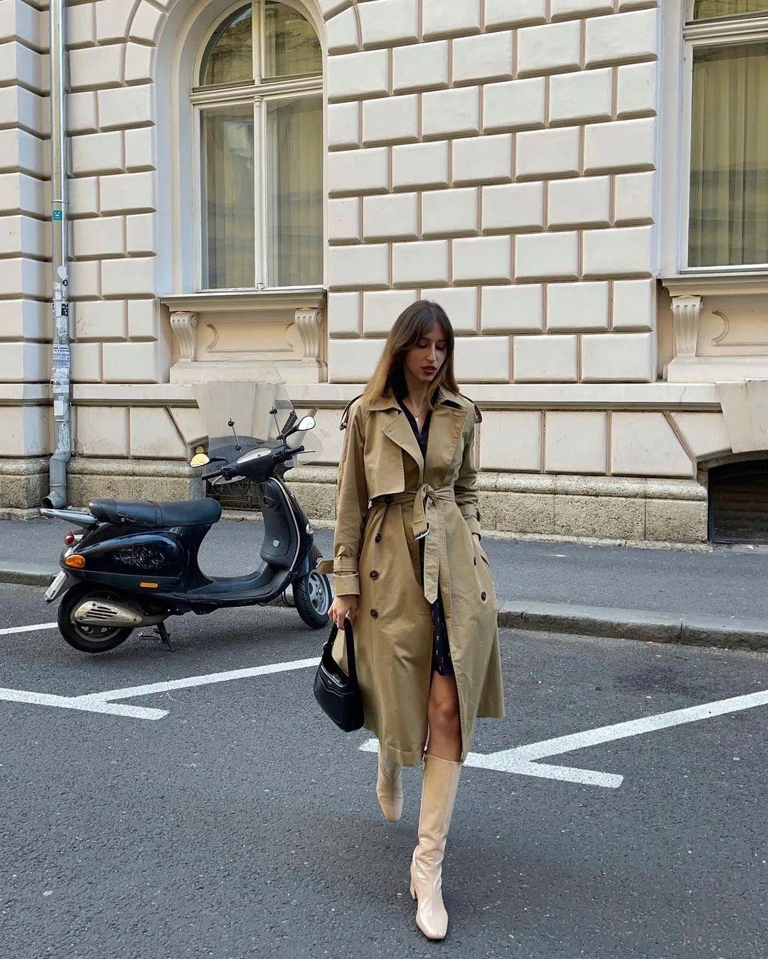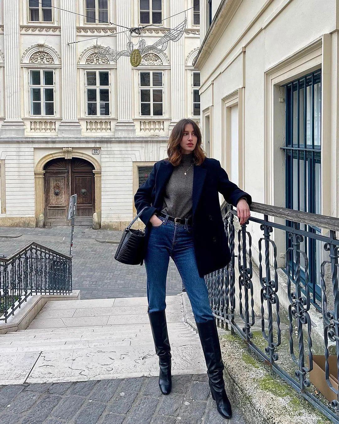 白色、米色长筒靴今年比较火,在街拍里挺常见的,试穿后发现并没有想象中难搭。一般搭牛仔单品或者同色系单品都可以。▼