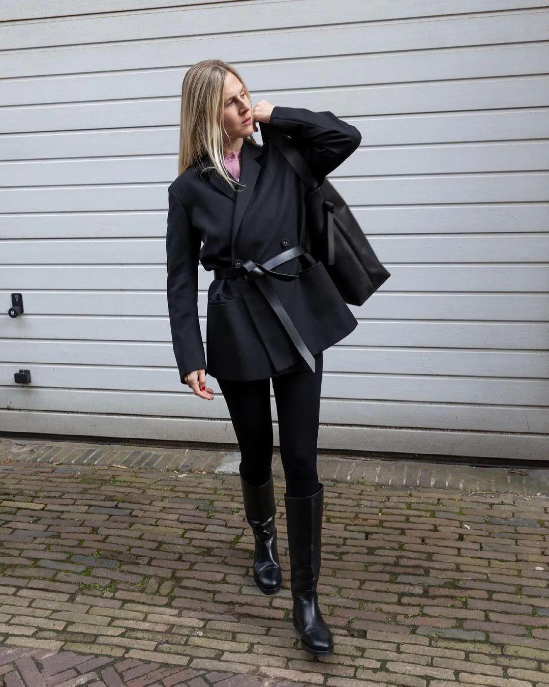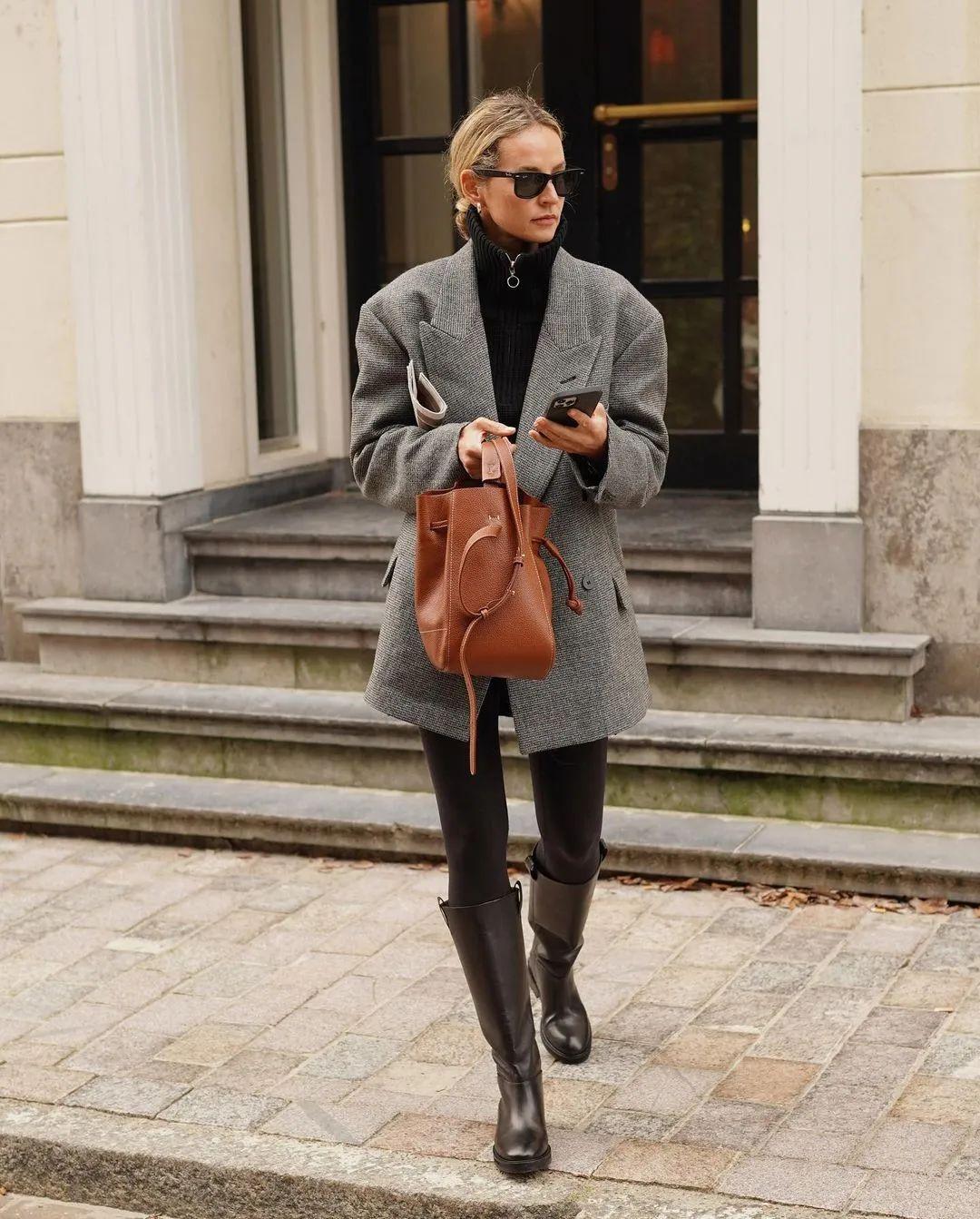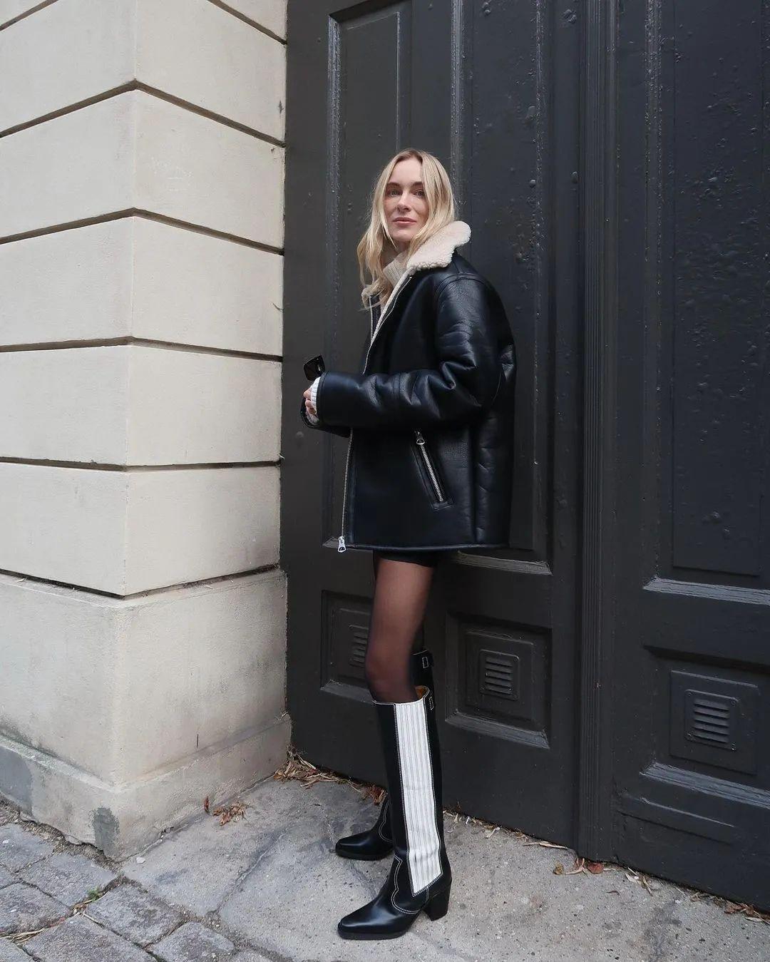 皮质硬挺的靴子比较帅气,软一点的更柔和,就是容易产生褶皱。▼