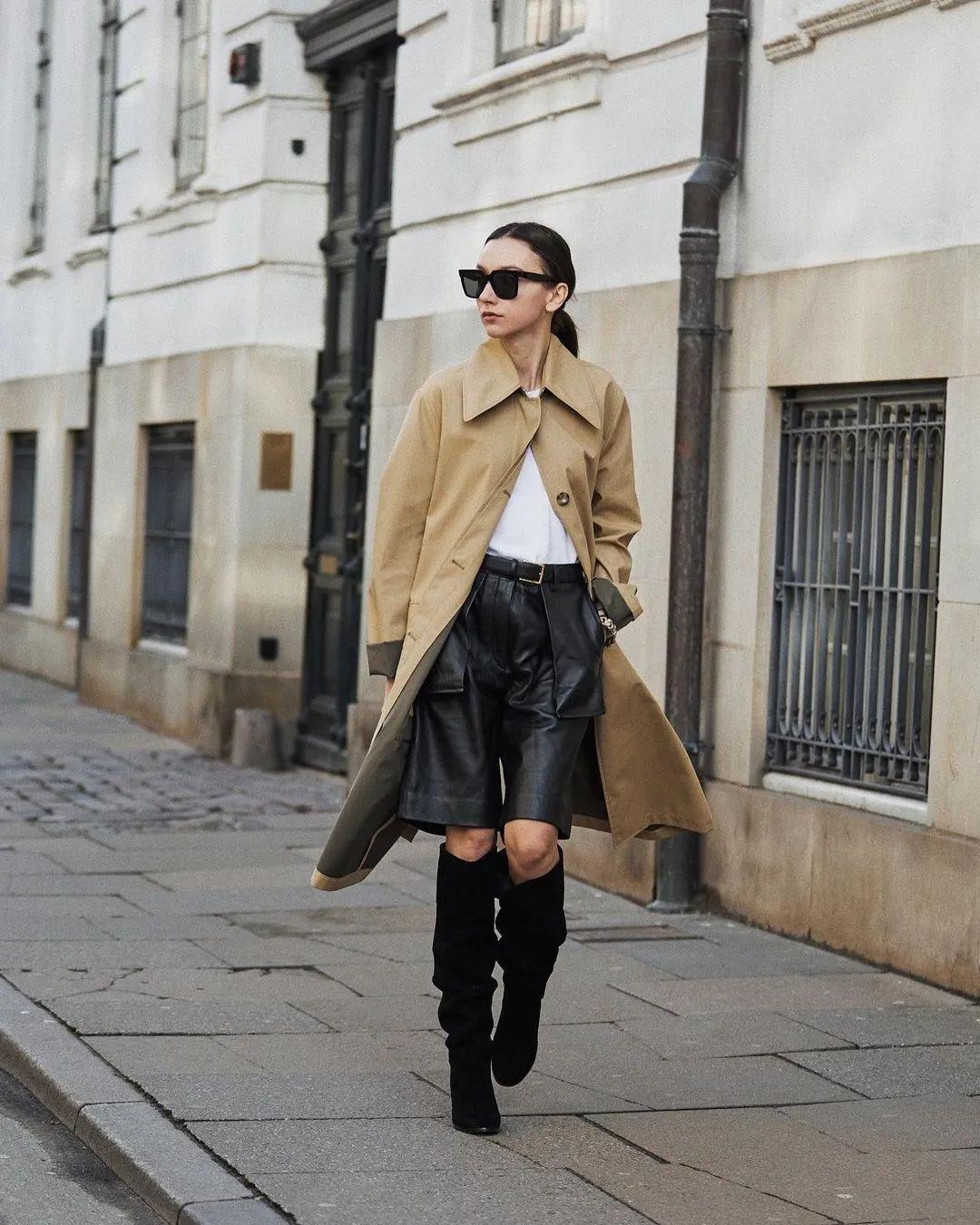 三是搭短裤短裙,适合天气暖和的时候。▼