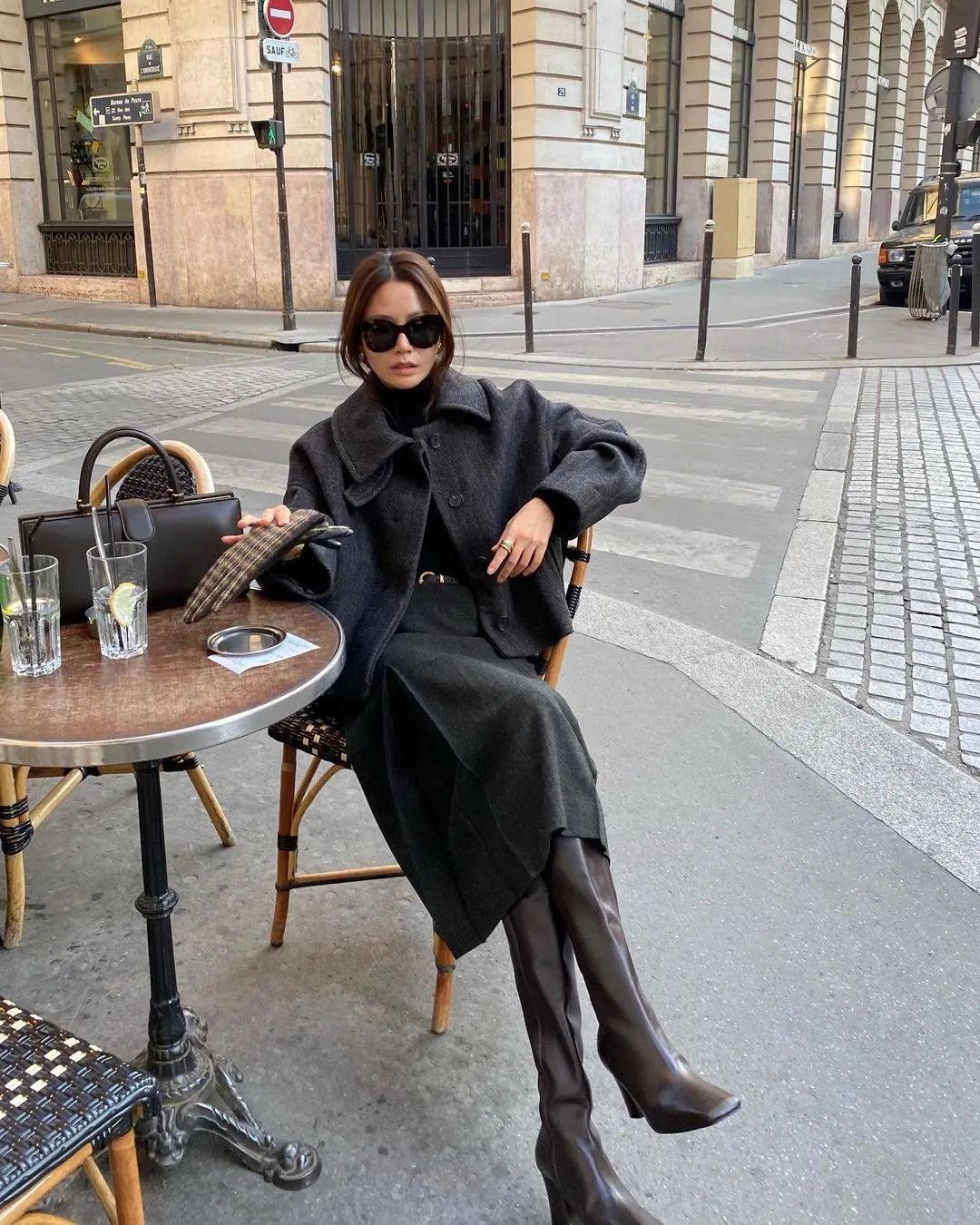 如果你的鞋柜里已经有很多黑色鞋了,还可以来一双大地色系的靴子,棕色、卡其色都行。▼