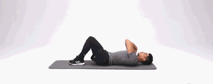 1、身体仰卧于地垫上,屈膝成90度左右,脚部平放在地上。平地上切勿把脚部固定(例如由同伴用手按着脚踝),否则大腿和髋部的屈肌便会加入工作,从而降低了腹部肌肉的工作量。