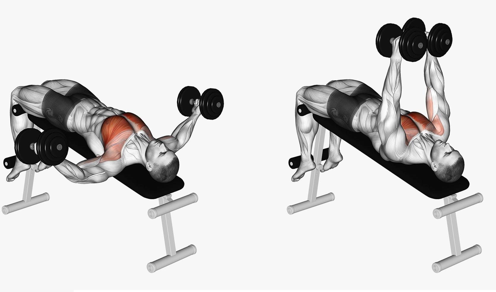 下斜哑铃飞鸟的常见错误肩膀太深:为避免严重的肩部拉伤,肘部不应低于长凳。