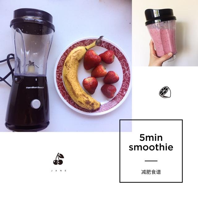 前几天看烧钱快报推送的搅碎机,好像也叫奶昔杯?容量刚好适合一个人,还可以随身带走,所以就买了,价格也便宜,用了一个5刀的礼卡,算下来这个小搅碎机才10块~今天尝试做了一个草莓香蕉smoothie,很成功,容易上手,感觉很多妹子都会做吧? 我就付个小食谱~ 减肥必备啊~