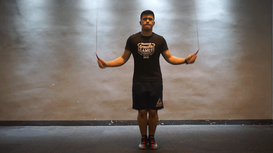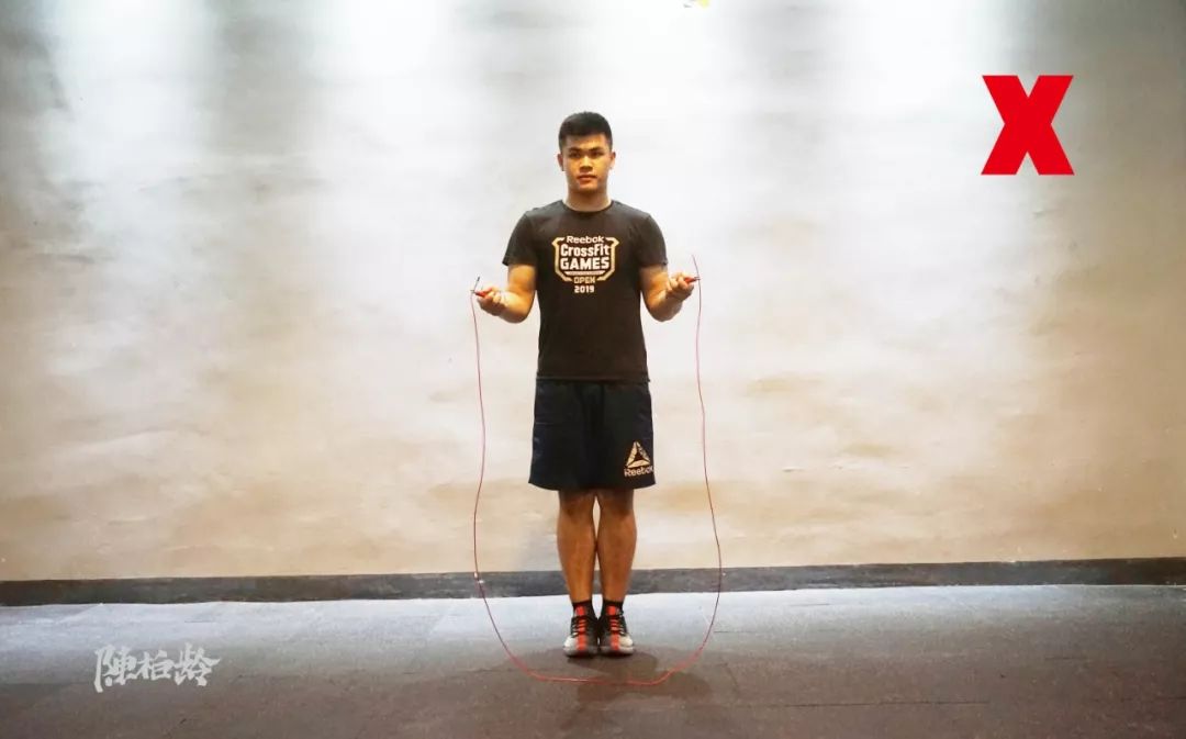 (错误示范:甩跳绳时用肩甩,而不是用手腕甩)