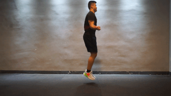 (错误示范:在跳绳时,后脚跟着地)