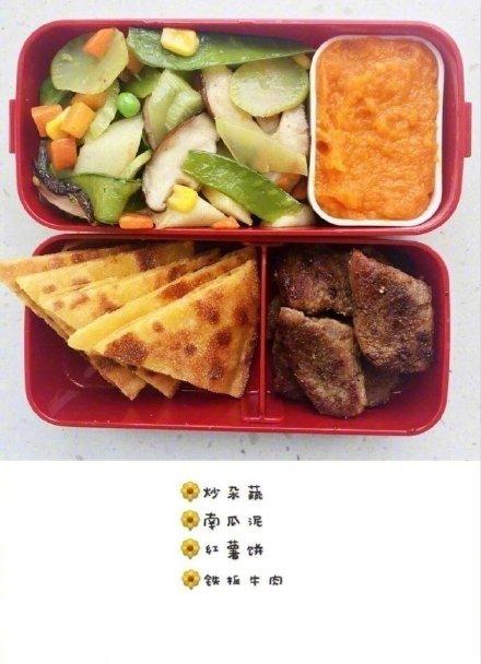 炒杂蔬+南瓜饼+红薯饼+铁板牛肉