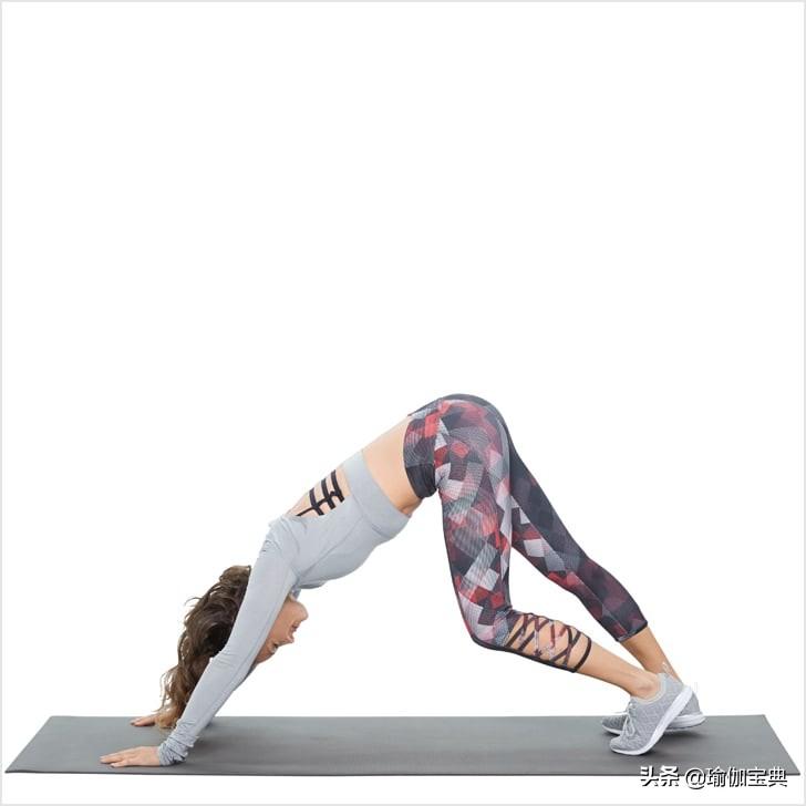 小贴士:如果你的肩膀感到疲劳,请降到膝盖休息,然后回到下犬式姿势,完成重复动作。