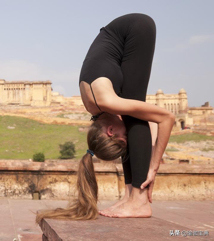 先做下犬式,然后开始双手朝脚趾方向走,形成站立前弯。让你的躯干悬在腿上。为了进行更深的伸展,将脚掌放在卷好的粘性垫子或毛巾上,脚后跟放在地板上。慢慢地把你的手从脚上移开,直到你感觉到良好的伸展。