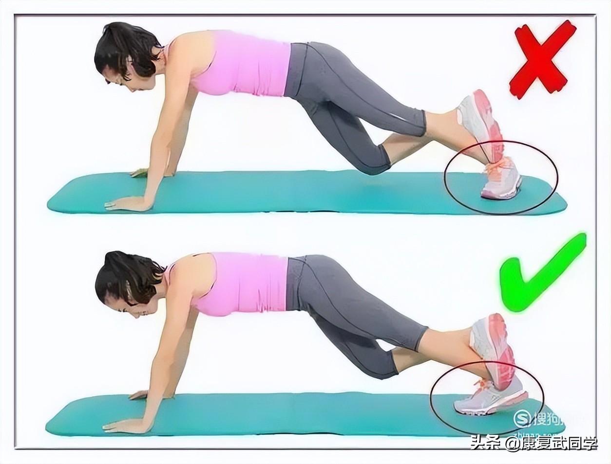 跪姿膝伸肌拉伸:左腿跨前一步,将左膝弯曲约90°。保持左膝位于左脚踝上方。朝身后伸展右腿,右膝接触地面。右小腿横放在地上。抓住一个物体或将双手放在左膝上来保持平衡。前移髋部,朝左脚踝前方推左膝,背屈左脚踝。对另一条腿重复此拉伸。