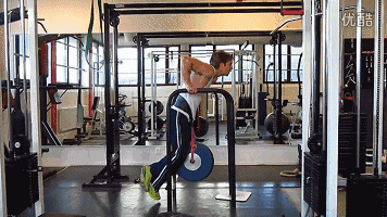 A、动作1::采取负重的方式增加双杠臂屈伸的难度,将能大限度地刺激你的肱三头肌,增强臂围。