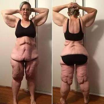 看这个人身上的皮肤,就是快速减肥导致的,一个月瘦十斤,一个月瘦十几斤的原因,它的胶原蛋白供不上身体的需求,脂肪的快速减少,脂肪就开始往下掉,这个时候胶原蛋白跟不上,于是皮肤开始出现松弛。