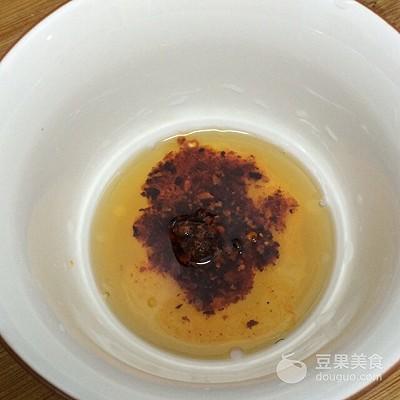 8、调料汁:一勺辣椒油、一勺香油和盐调均