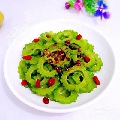 小贴士苦瓜用盐腌制一下,去除点苦味 喜欢辣的可以多放点辣椒油
