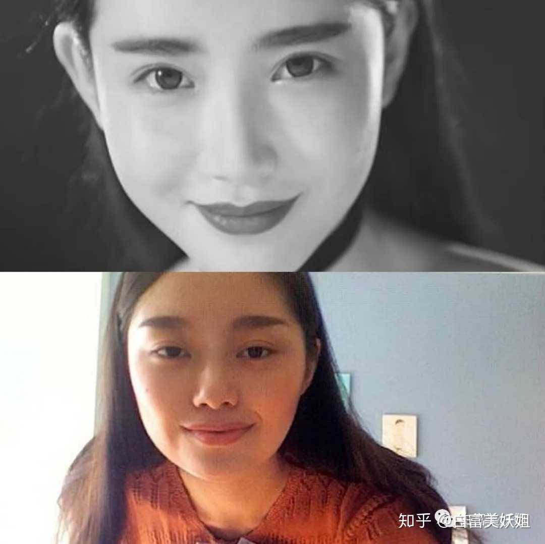 照片里雪白无暇的皮肤在高清镜头里却与脖子色差太严重,只能让人猜测是否是用面粉直接上的妆;