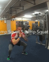 锻炼方法:跳深蹲是3次跳来算1次,深蹲姿势一样,开始姿势是坐的开始。跳一下,2次跳比准备姿势高点,后一次就准备动作一样高度坐一下。