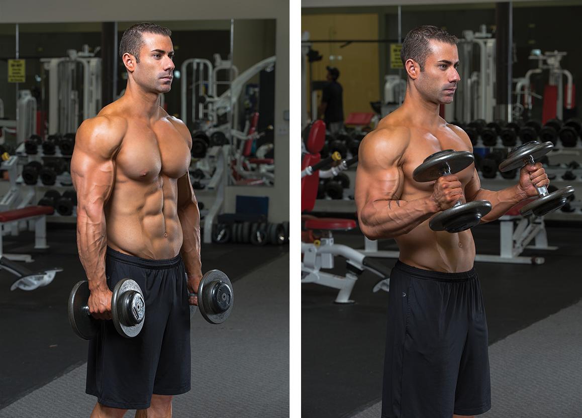 像这样的训练可以让肌肉拉长和拉伸的姿势,并且给肌肉生长提供巨大的潜力。做上斜凳哑铃弯举的时候,掌心面对着自己,二头就处于一个被拉长的姿势,会感受到二头肌长头被拉伸。启动的时候,二头肌就会处于较大的张力之下。
