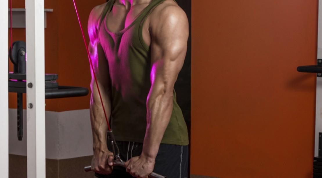 这个动作集中刺激三头肌的长头——尤其是阻力曲线的起始点。这个动作当中,手臂的收缩是通过三头肌的长头来进行的,同样也会刺激到背阔肌。