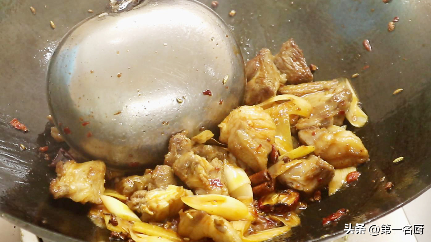 5.加入两勺食盐,一勺白糖提鲜,加入半勺生抽调味,再加入少许老抽调色,煮开以后关火,连汤带肉一起倒入高压锅里面,开大火继续煮开,等高压锅上汽以后计时,炖10分钟就可以了。