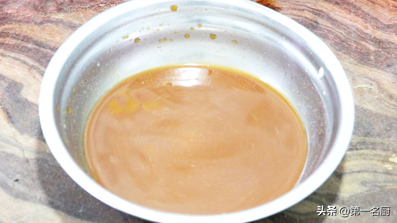 5,加入老抽几滴调色,料酒适量去腥,加入食盐1克,十三香1克,再次搅拌化开,