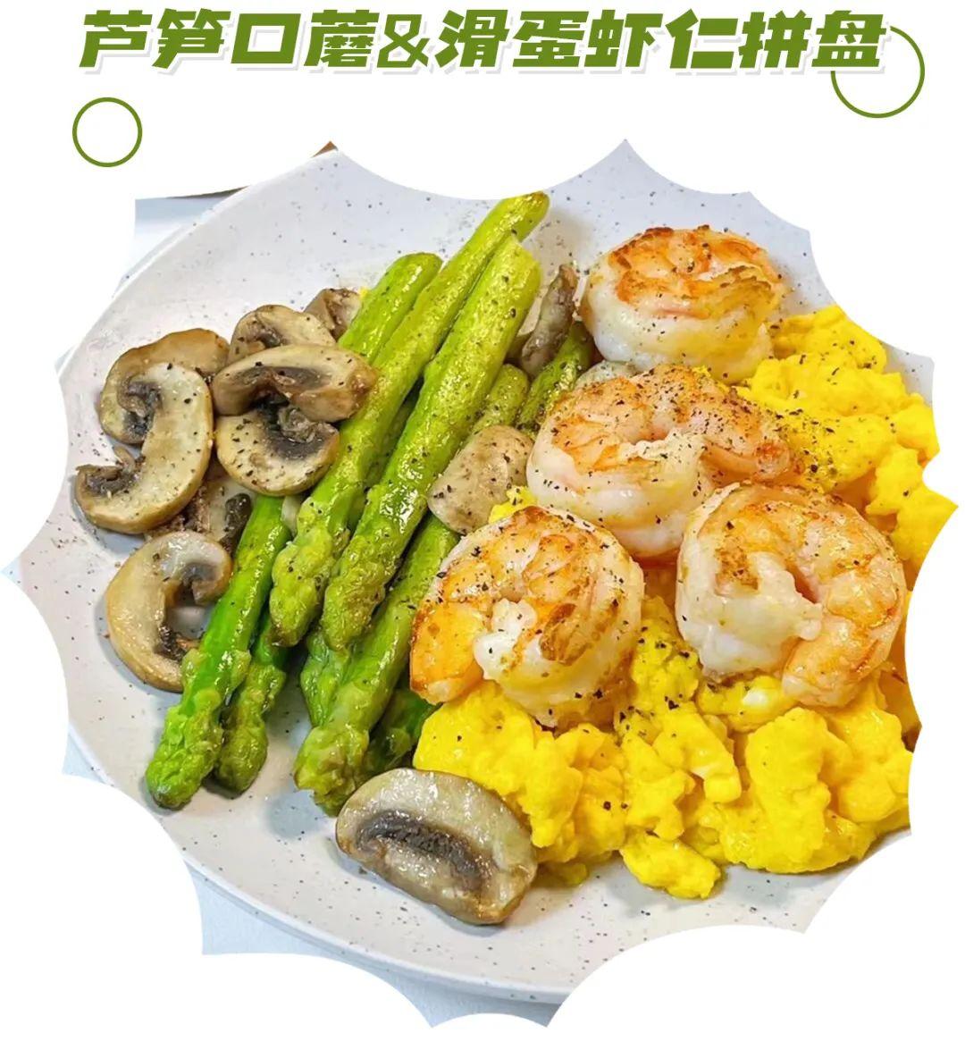 食材:虾仁、鸡蛋、口蘑、芦笋