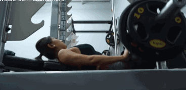 动作1,身体依靠在健身椅利用史密斯机负重做臀推,使用的重量逐渐的递增/恒定,每组做12 - 8次