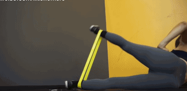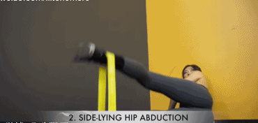 动作2,利用弹力带完成侧抬腿,使用的重量恒定,弹力带是必备的,每组(每一边)做15 - 12次或者12 - 10次,从单侧的一边开始做