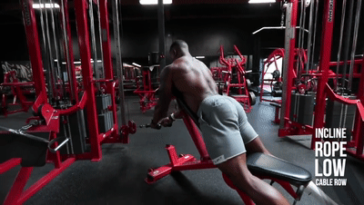 八、俯姿上拉 Incline Rope Low Cable Row动作要点:手肘向下推进,在动作后短暂停顿再恢复原样