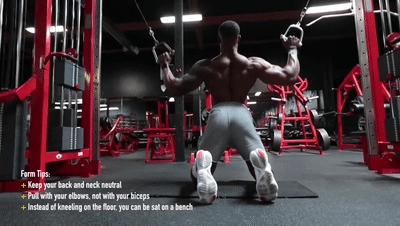 一、跪姿曲臂下拉 Dual Cable Lat Pulldown要点:背部和脖子保持直立,下拉时注意力放在背阔肌上,而不是肱二头肌;可以跪在地板上,也可以坐在长凳上练习。
