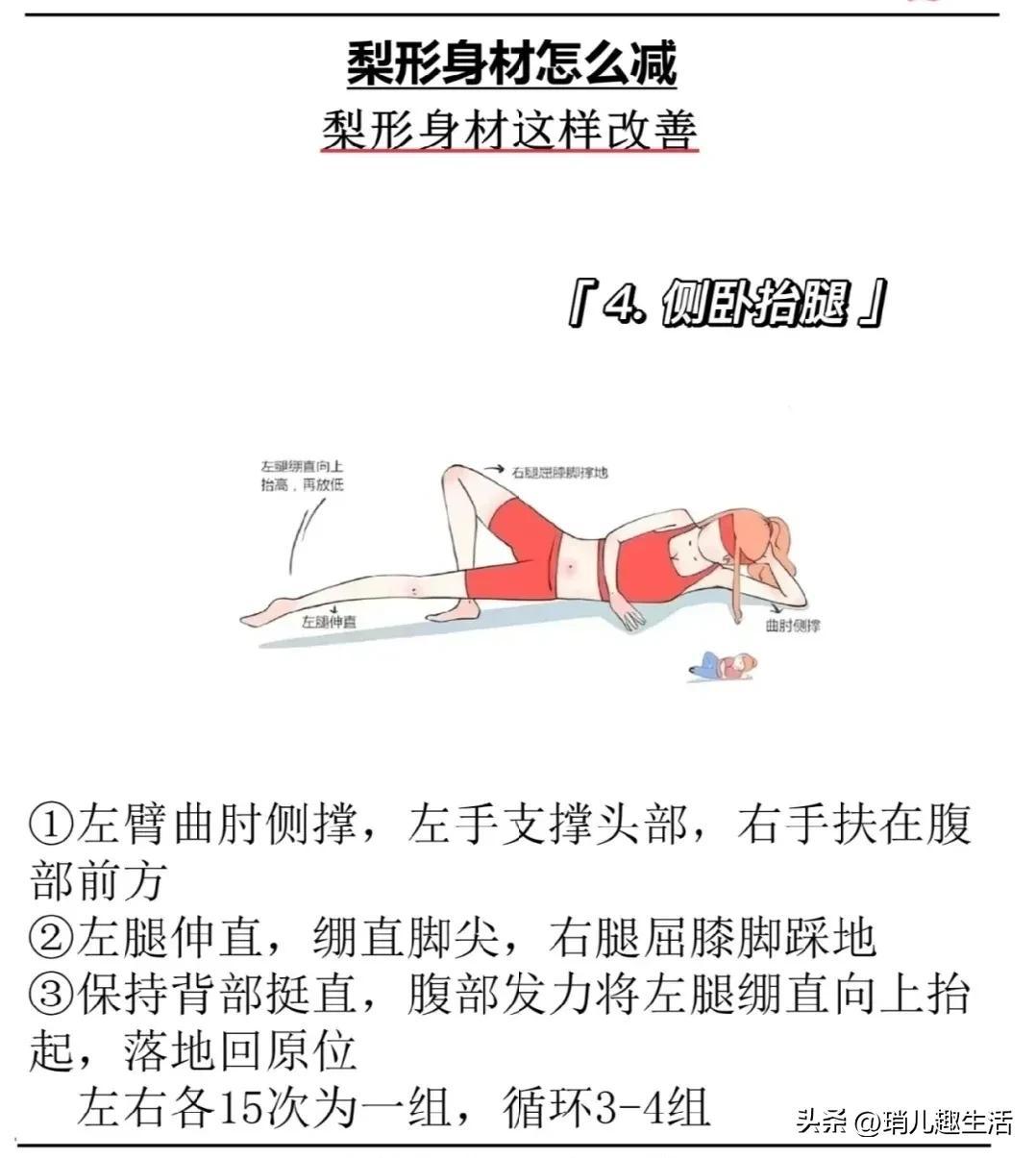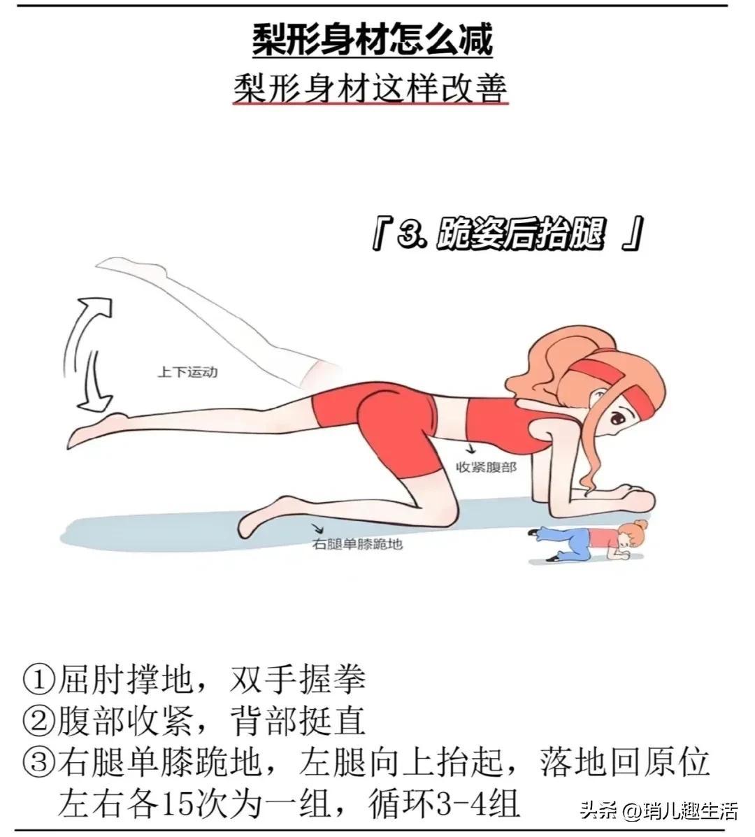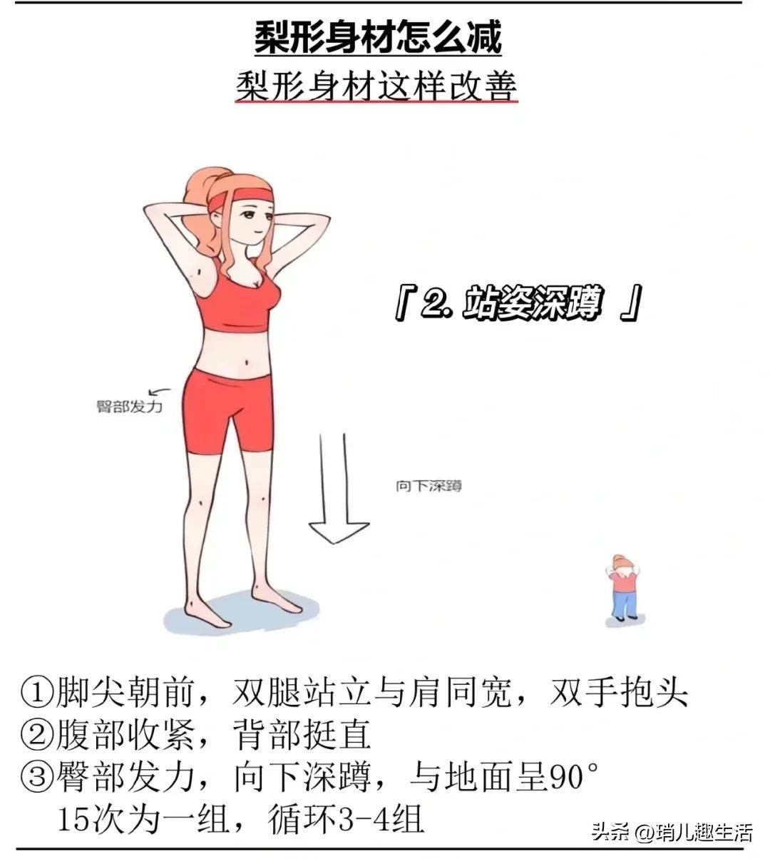 给梨形身材的姐妹们提供4个饮食方法和4个运动方法,每周4-5练。