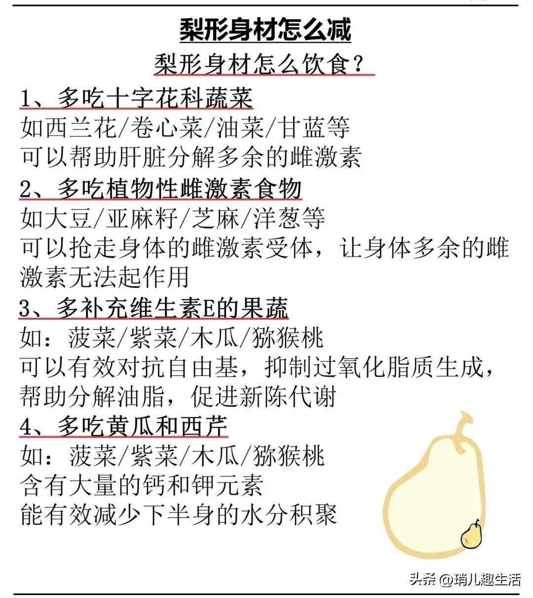 梨形身材减肥方法,梨形身材呢看上去是不太好看的,不仅穿衣服不太好看,减肥也是比较困难的,不同的身材类型适合不同的减肥方法,以下是梨形身材减肥方法及相关资料。