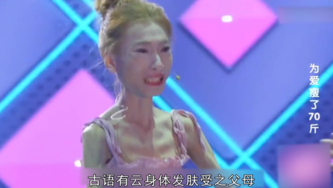 正是因为她的坚持,她的体重直线下降,从当初的120斤变成了57斤,从一个原先的丰腴美人变成了一个皮包骨,惨不忍睹。