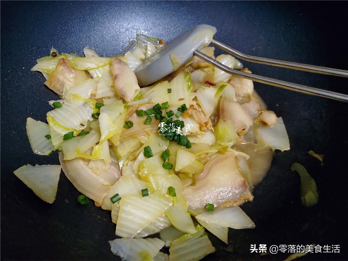 7、几分钟后,收汁;趁锅里还有一点点汤汁的时候,倒入白菜梆子;