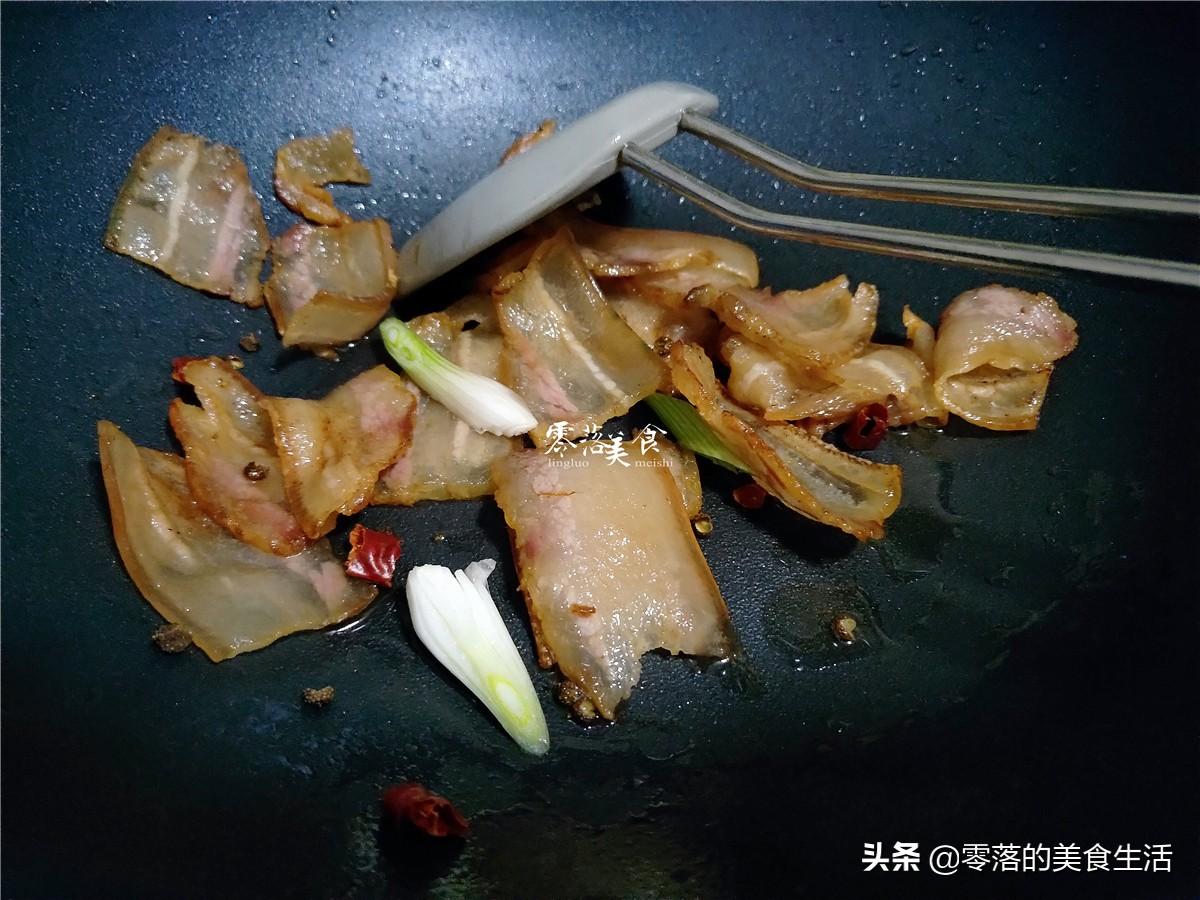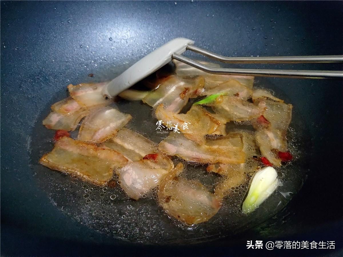 2、我家的腊肉是用五花肉腌制的,煎腊肉的时候可以不放油,多余的油倒出来(留着以后炒菜用),吃起来不油腻,口感更清爽,也更健康低脂;