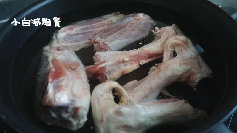 3、用刀背把羊小腿剁成两段,放入冷水中煮出血沫。