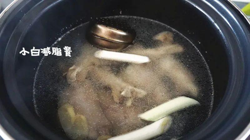 4、用勺子将煮出的血沫撇出,放入除食盐外的配料,盖上锅盖煮至羊肉软烂。(炖煮的时间会稍微长一点,小白直接用高压锅煮了40分钟)
