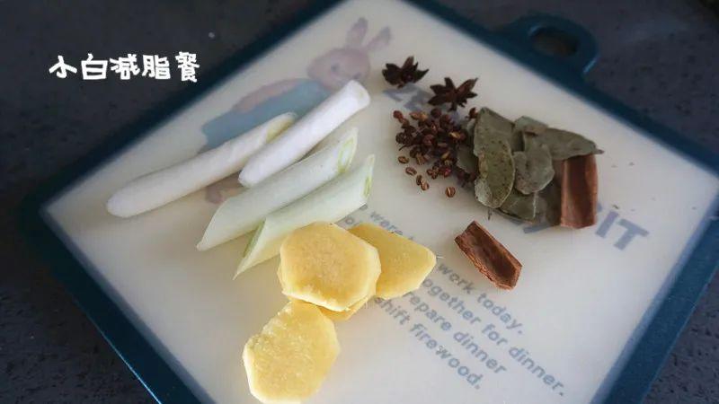 配料:大葱、姜、桂皮、八角、花椒、香叶、食盐适量