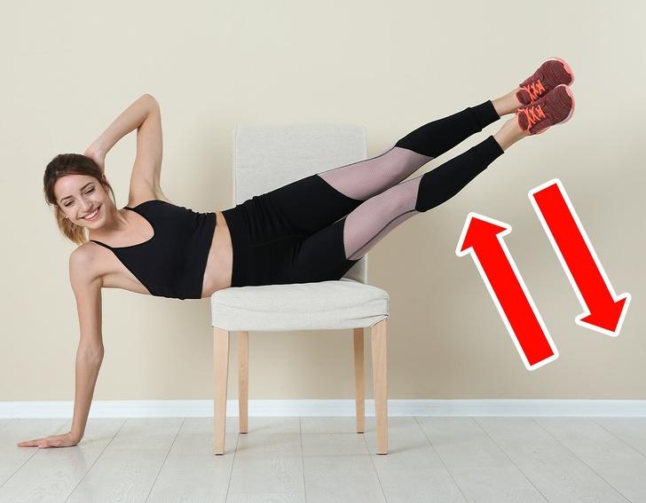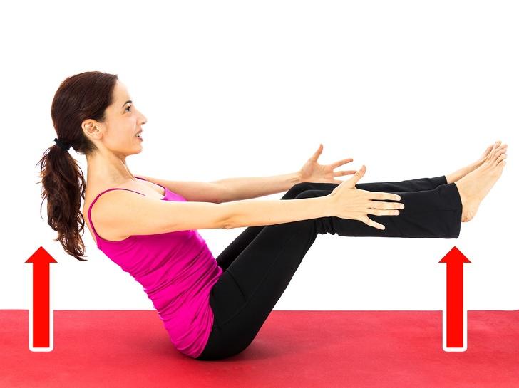 首先坐着时,将双腿抬离地板,使其位于您的正前方。然后,将膝盖拉到胸前,再次伸展双腿。做3组,每组20次。