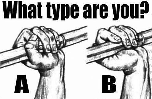 建议大家采用的握法是“实握”所谓的实握就是上述图片中的A