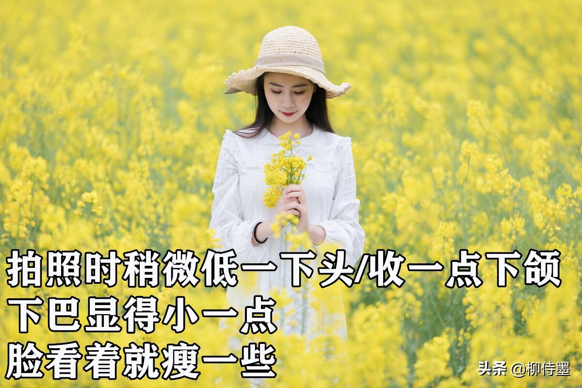 拍照收下颌,下巴会显得小一点,脸看上去就会瘦一些。