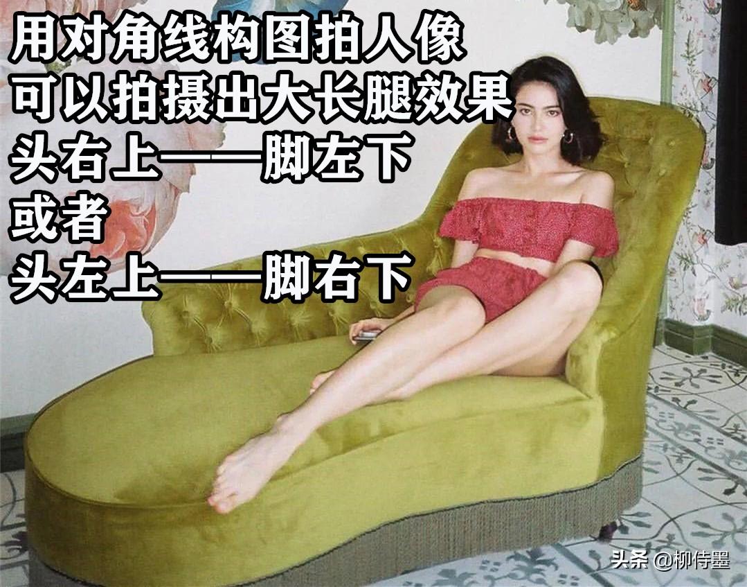 让模特头和脚,分别位于照片的“左上角——右下角”,或者是“右上角——左下角”,