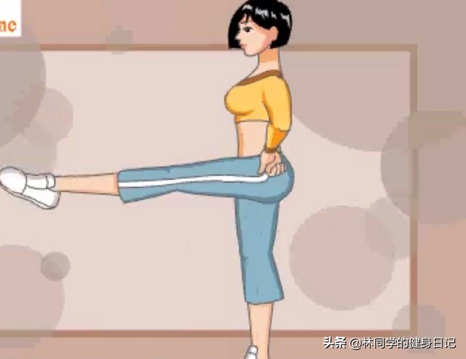 等抬起到与地面平行的平面之后再落下,接着抬起右脚做重复的动作。这个动作主要在于拉伸腿部和活动脚踝,左右脚抬起来的时候脚踝是始终处于转动之中的,所以这也可以达到疏松筋骨的果。