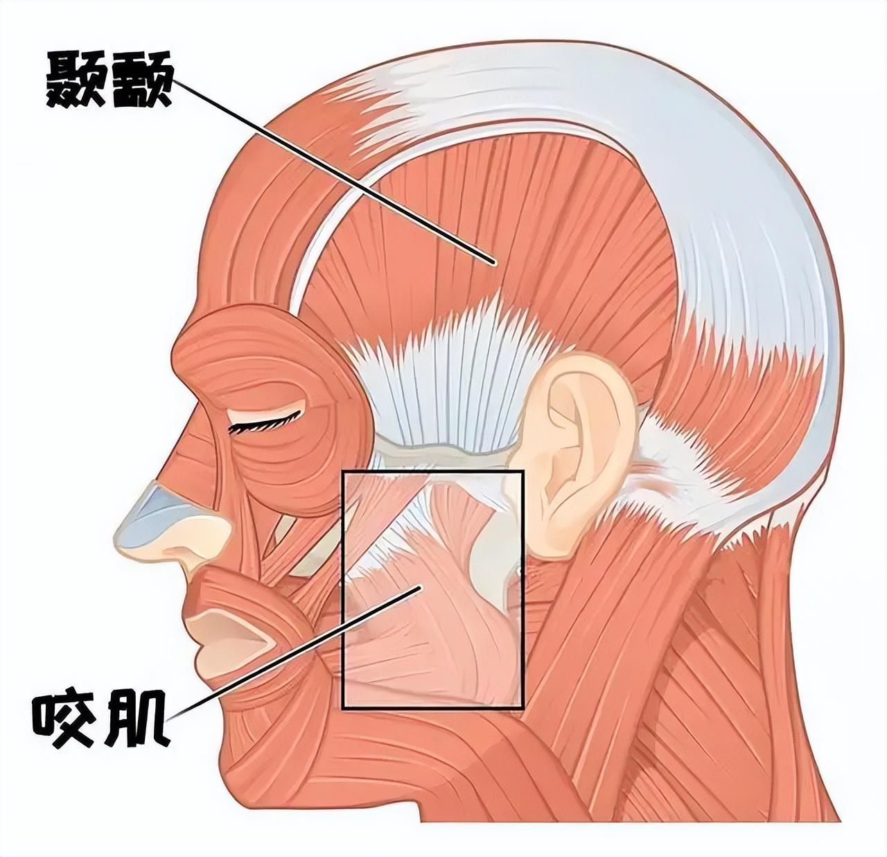 咬肌与颞肌作为升颌肌群,收缩与放松可以帮助人们完成咀嚼、说话等行为,除了先天的骨骼结构因素问题外,这两块肌肉紊乱过紧,就会造成下颌角角度过肥大,让面部看起来大一圈,还会代偿出面部不对称,单侧紧张的话,在张嘴时,会使下颌向一侧歪斜,同时这侧的脸变大,视觉表现出大小脸一侧下颌线不清晰等。
